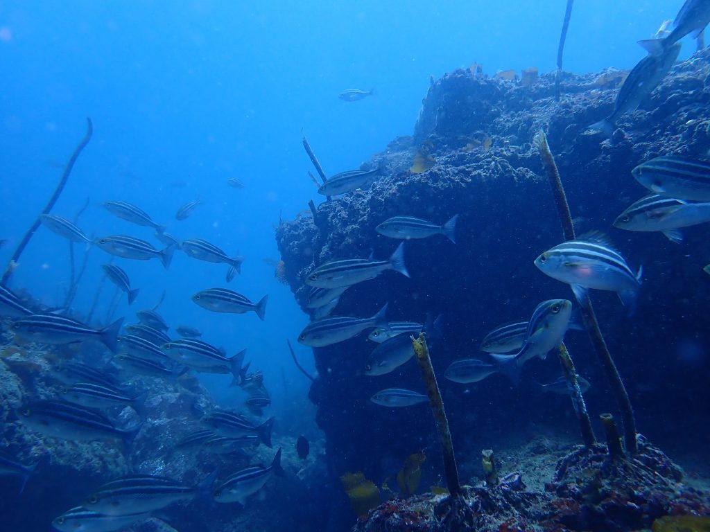タカサゴ、アジなども群れていました