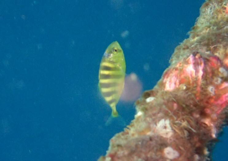 ブイにはコガネシマアジの幼魚がいますよ